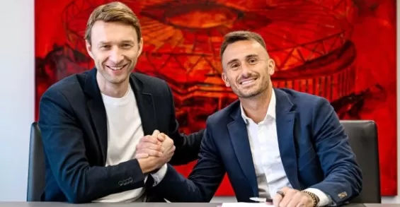 أليكس جارسيا أثناء توقيع عقود الانضمام لبطل الدوري الألماني