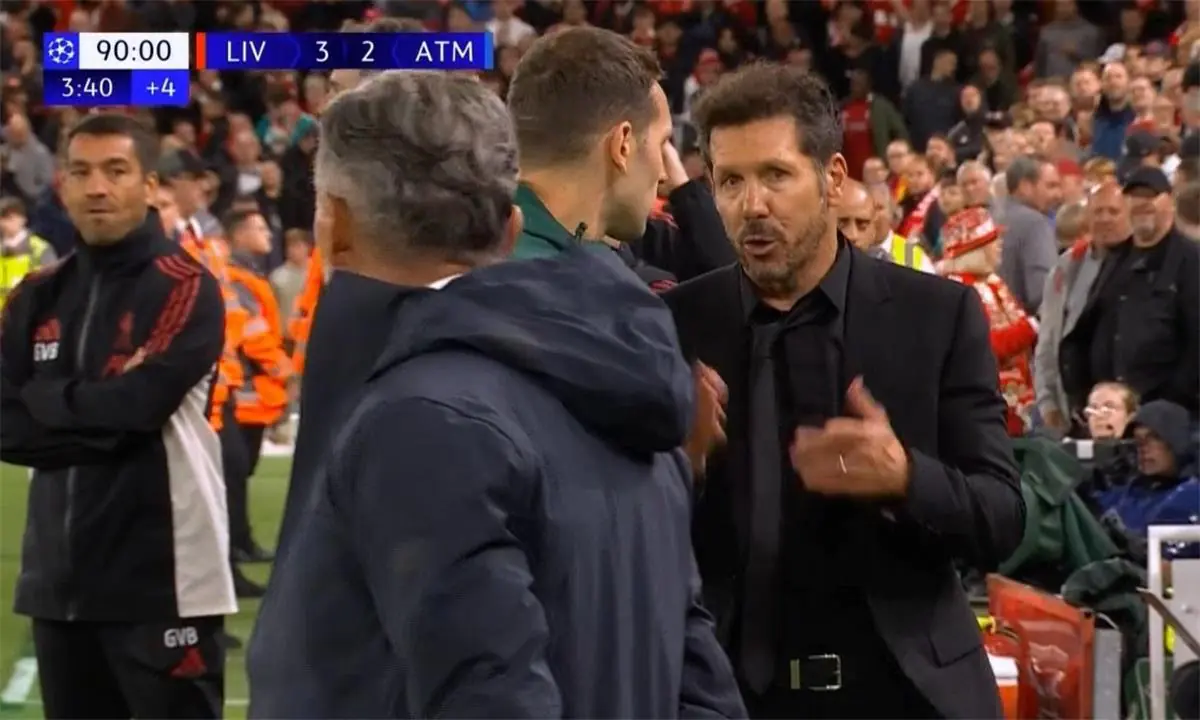 ووفقًا لصحيفة ماركا الإسبانية، فقد أشعل هدف فان دايك الأجواء داخل الملعب، حيث دخل سيميوني في مشادة حادة مع بعض الجماهير.