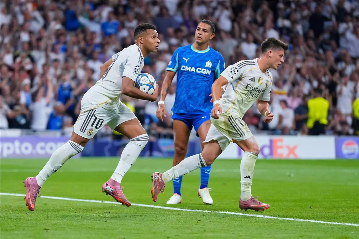حقق فريق ريال مدريد فوزًا مثيرًا على ضيفه مارسيليا في الجولة الأولى من مرحلة الدوري لموسم 2025-2026 بدوري أبطال أوروبا، في مباراة أقيمت على ملعب “سانتياجو برنابيو”. انتهت المواجهة بهدفين لهدف، حيث سجل كيليان مبابي هدفي الملكي من ضربتي جزاء، رغم النقص العددي منذ الدقيقة 72 نتيجة طرد داني كارفاخل.