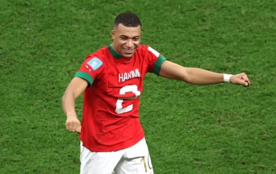 وتبادل كيليان مبابي قميصه بقميص نجم المنتخب المغربي وزميله في باريس سان جيرمان أشرف حكيمي.