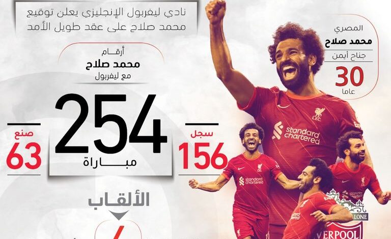 محمد صلاح يجدد عقده مع نادي ليفربول الإنجليزي لمدة عامين