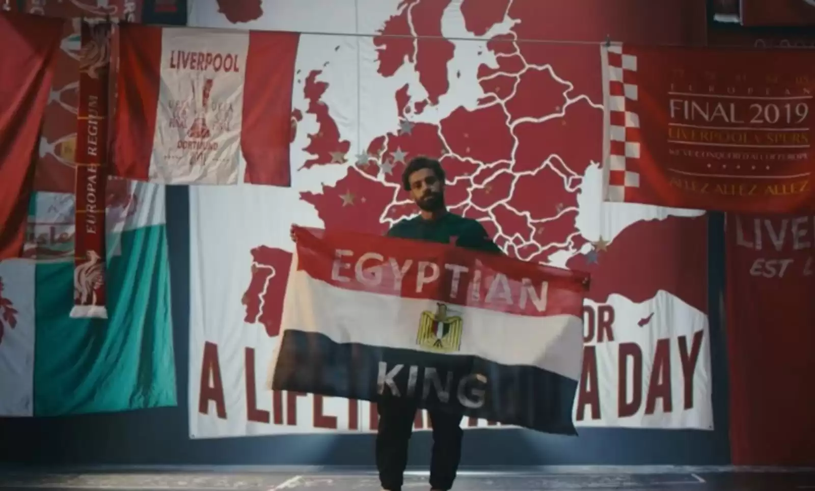 وظهر محمد صلاح خلال حفل الترويج، بعلم مصر أثناء تقديم قميص نادي ليفربول الثالث هذا الموسم، رفع صلاح علم مصر مكتوبا عليه “الملك المصري”.