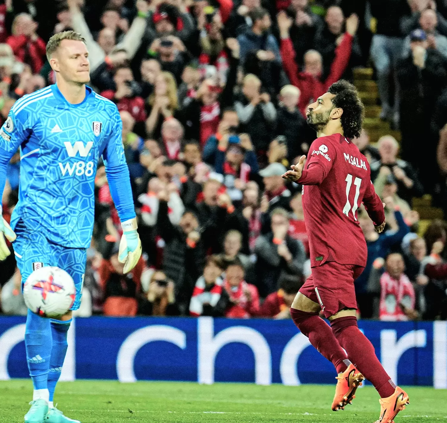أحرز النجم الدولي المصري محمد صلاح جناح ليفربول هدف التقدم والفوز لصالح الريدز عبر علامة جزاء نجح في تنفيذها داخل شباك فولهام بالدقيقة 40، ليقتنص الريدز الثلاث نقاط.