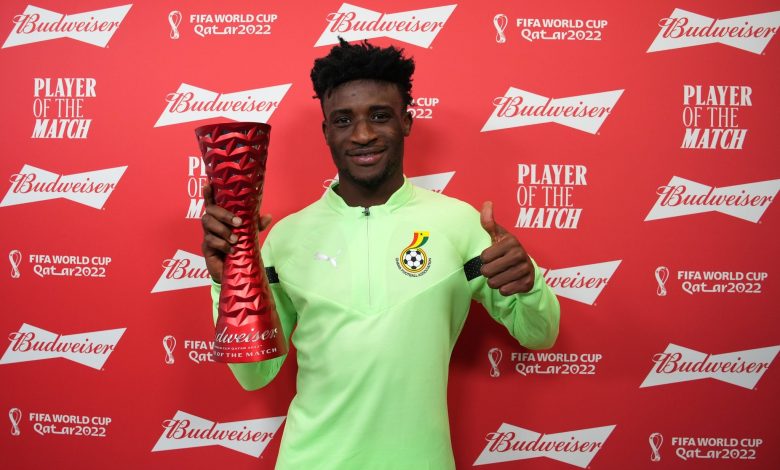 حصد نجم وسط غانا محمد قدوس على جائزة رجل المباراة في فوز البلاك ستارز الثمين على نظيره الكوري الجنوبي بثلاث أهداف مقابل هدفين، في مباراة التي جمعت بينهما مساء اليوم الإثنين في الجولة الثانية للمجموعة الثامنة ببطولة كأس العالم التي تقام حاليا في قطر.