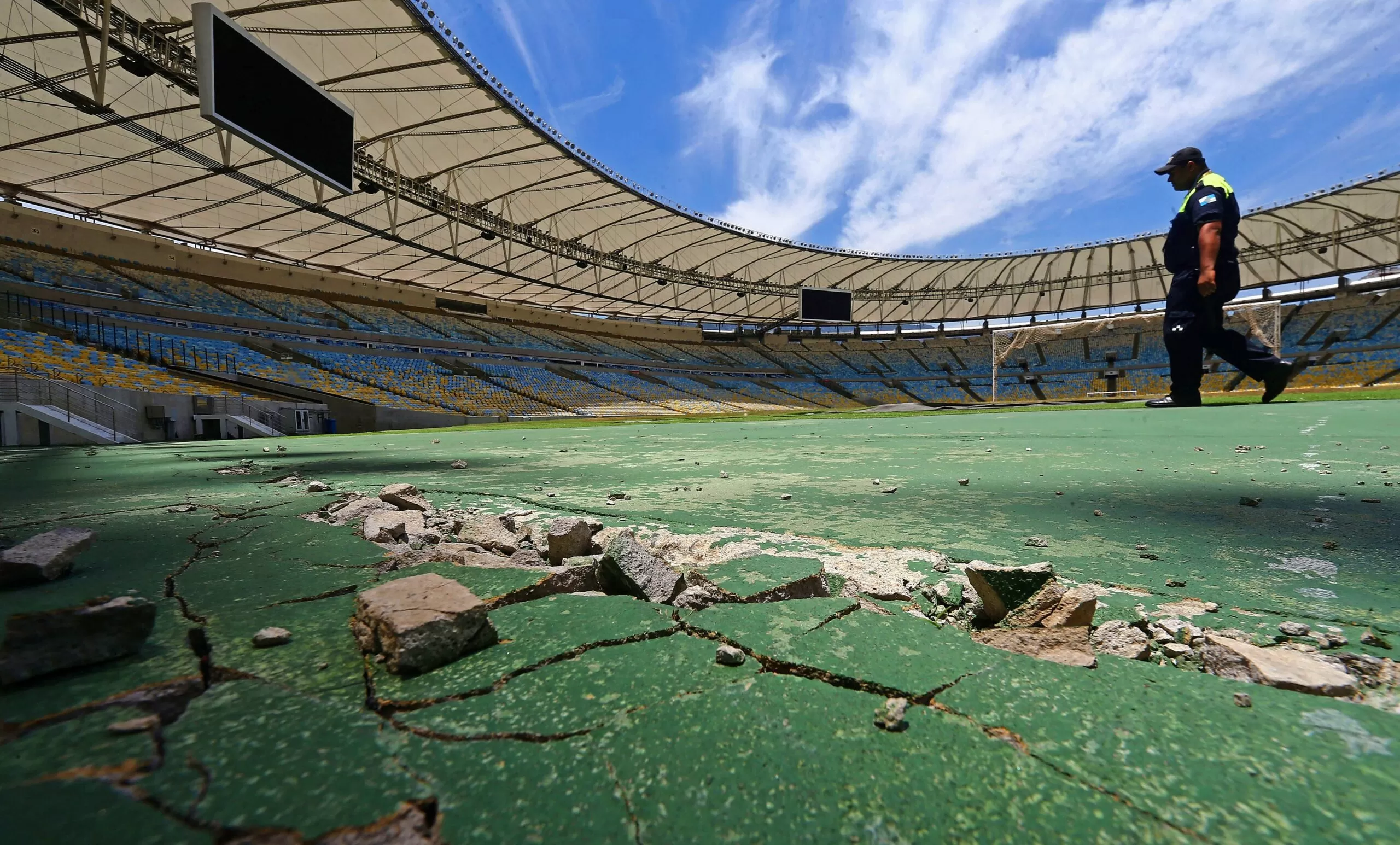 وظهر عشب الملعب الواقع في ريو دي جانيرو بمظهر رديء للغاية مطلع هذا الأسبوع، عندما استضاف مباراتين بالدوري البرازيلي، فلومينينزي-أمريكا مينيرو وفاسكو دا جاما-أتلتيكو مينيرو، لا يفصل بينهما سوى 15 ساعة.