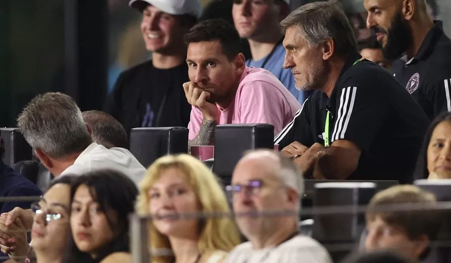 ميسي يتابع إحدى مباريات فريقه من المدرجات