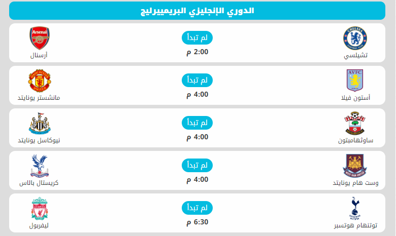 القنوات الناقلة لمباريات اليوم بالدوري الإنجليزي لكرة القدم: