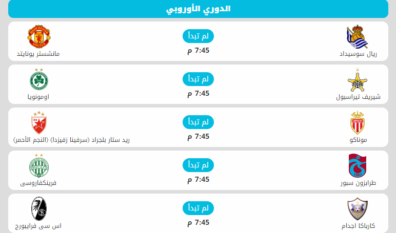 القنوات الناقلة لمباريات اليوم بالدوري الأوروبي لكرة القدم: