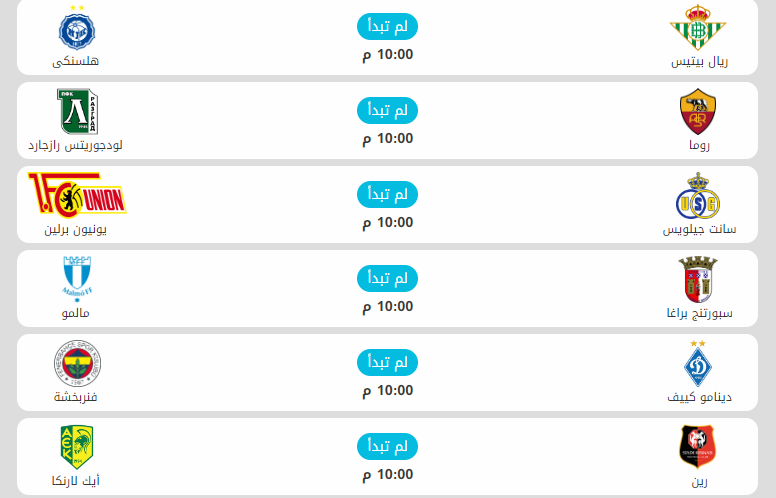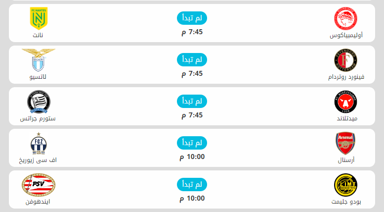 تذاع مباريات اليوم الخميس بالدوري الأوروبي لكرة القدم حصريا على شبكة قنوات بي إن سبورت، مالكة حقوق بث مباريات الشامبيونزلييج في الشرق الأوسط وشمال إفريقيا.