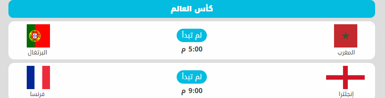 تتواصل اليوم السبت مباريات الدور ربع النهائي من بطولة العالم التي تستضيفها قطر وتستمر حتى الثامن عشر من ديسمبر الجاري، حيث يتطلع المنتخب المغربي إلى مواصلة مشوار التألق في البطولة عندما يلتقي نظيره البرتغالي