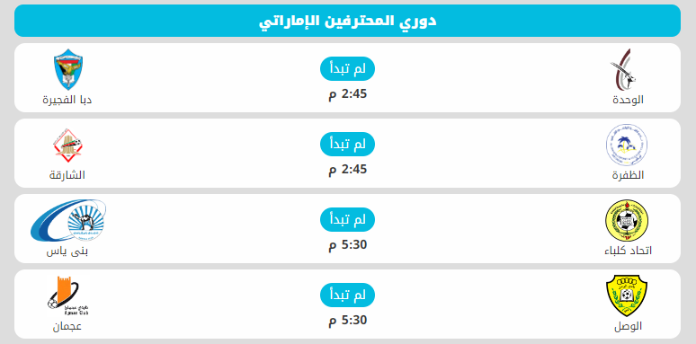 القنوات الناقلة لمباريات اليوم بالدوري الإماراتي لكرة القدم: