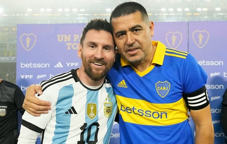 تواجد ميسي في المباراة التكريمية لخوان رومان ريكيلمي، نجم منتخب الأرجنتين المعتزل، على ملعب “لا بومبونيرا”.