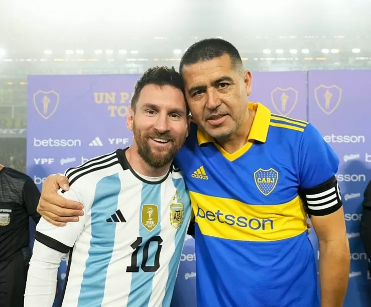 تواجد ميسي في المباراة التكريمية لخوان رومان ريكيلمي، نجم منتخب الأرجنتين المعتزل، على ملعب “لا بومبونيرا”.