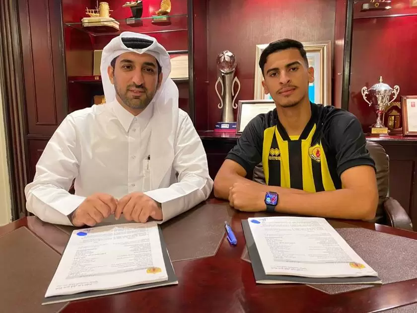 علي السعودي أثناء توقيعه على عقود انضمامه لنادي قطر