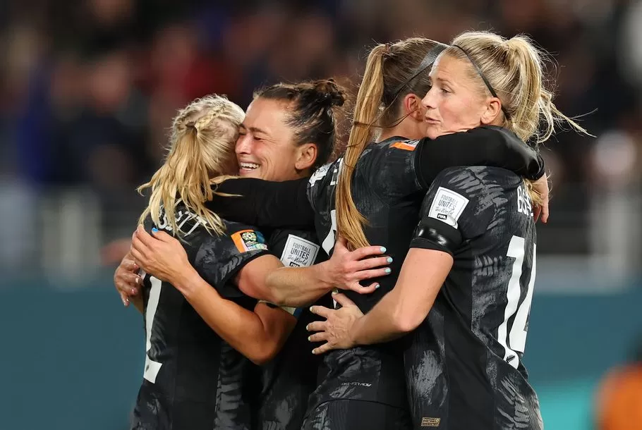لاعبات نيوزيلندا تحتفلن بهدف المباراة الوحيد