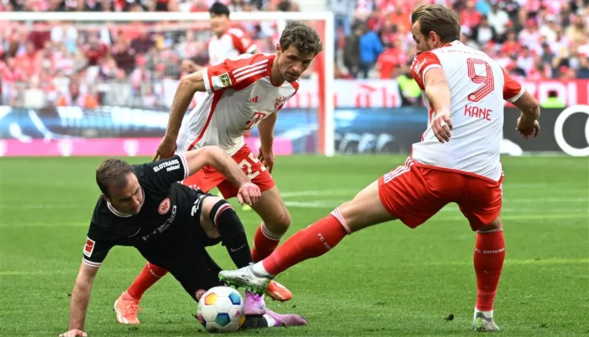 قاد المهاجم الإنجليزي هاري كين، فريقه بايرن ميونخ الألماني للفوز 2-1 على إينتراخت فرانكفورت بعد أن سجل هدفا في كل شوط خلال المباراة التي أقيمت بين الفريقين اليوم السبت ضمن الجولة الثالثة والثلاثين من الدوري الألماني لكرة القدم، وذلك قبل مواجهة الفريق ريال مدريد في ذهاب نصف نهائي دوري أبطال أوروبا.