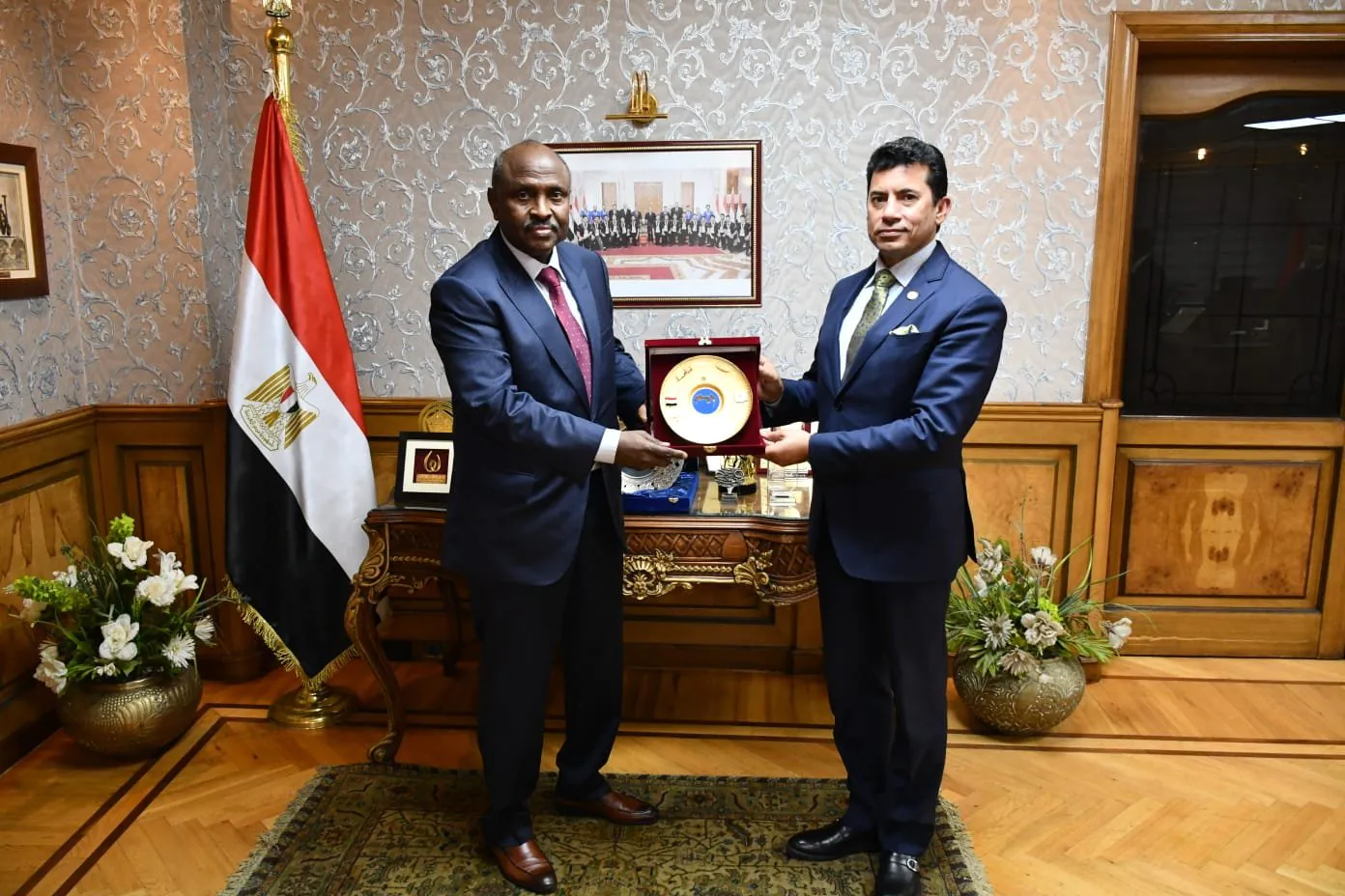 وزير الشباب والرياضة يبحث مع سفير جمهورية جيبوتي سبل التعاون في مجالي الشباب والرياضة