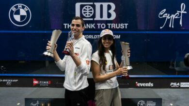 علي فرج و نوران جوهر يواصلان صدارة تصنيف الأسكواش عالميا
