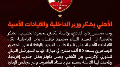 الأهلي: الموافقة على الحضور الجماهيري بالسعة الكاملة خلال لقاء “صن داونز”